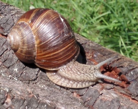 Nun erlebte ich einige Überraschungen: Es gibt Weinbergschnecken in ganz Europa bis rauf nach Südschweden. Die brauchen gar keinen Weinberg! In lichten Wäldern wohnen sie und überall, wo es grün ist. Sie werden in der Natur etwa 8 Jahre alt und im Terrarium bis zu 30! Und ich bin 64 Jahre lang auf der Welt und seh so eine zum allerersten Mal!